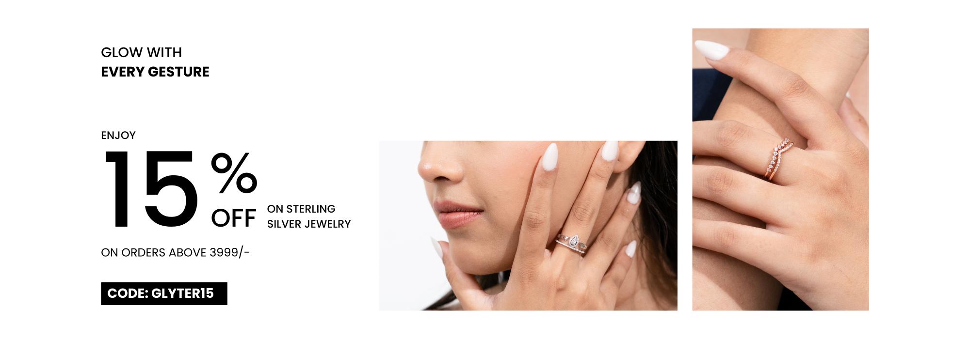 Shine bright with gleaming sterling silver. Explore our exquisite collection of hallmark sterling silver jewellery to find the pinnacle of modern elegance. Whether you're dressing for the office or a night out on the town, or just want to add a touch of casual charm to your outfit, GLYTERS has a young design that will redefine elegance for the modern lady.