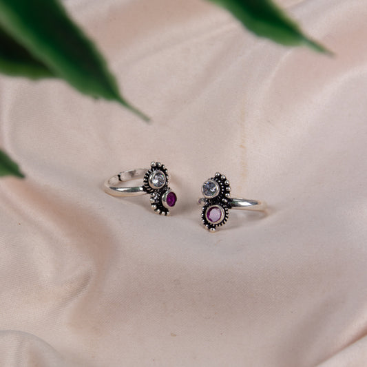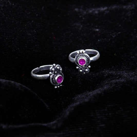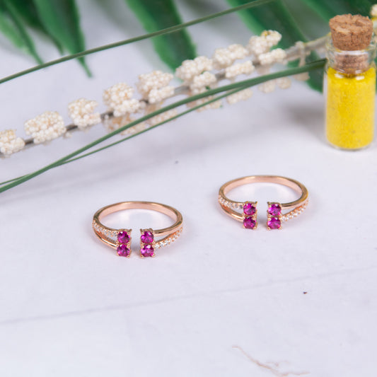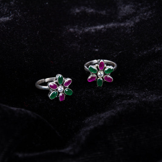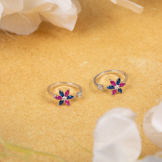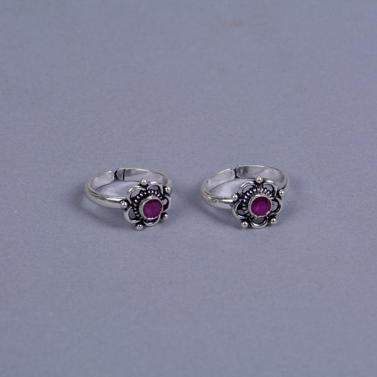 Majestic Ruby Blossom Silver Toe Rings