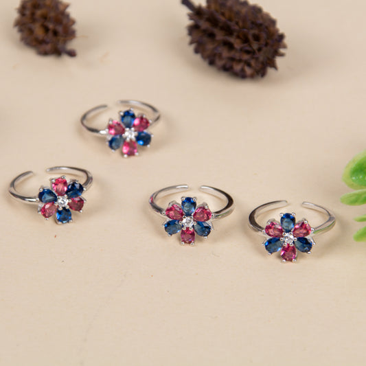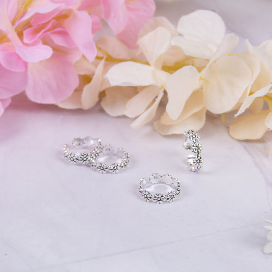 Blossoming Jewels Sterling Silver Toe Rings