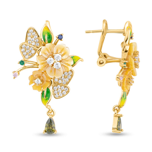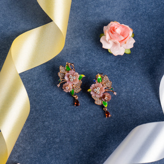Hummingbird Earrings with Flowers and Diamonds