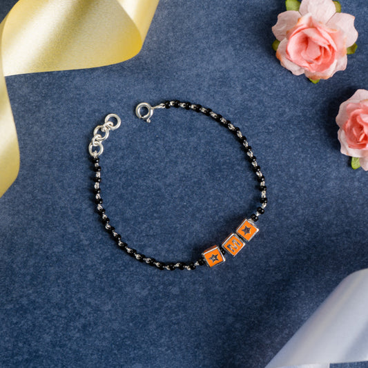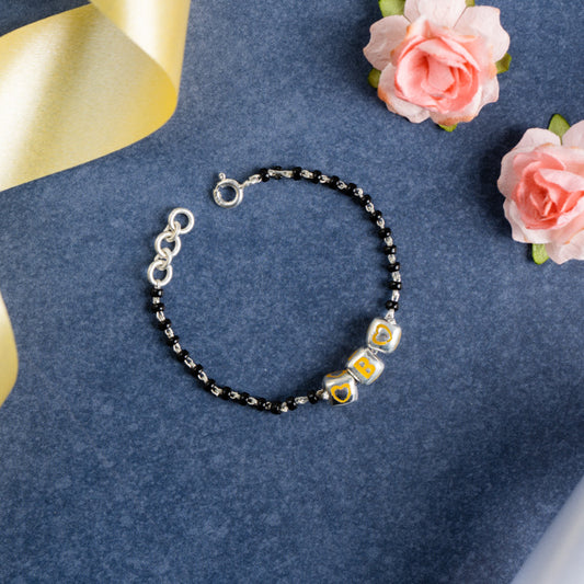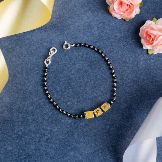 Black Beads and Yellow Letter Bracelet