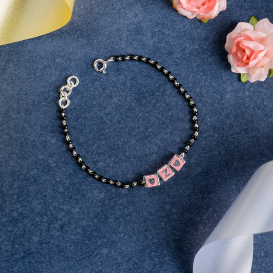 Black Beads and Pink Letter Bracelet