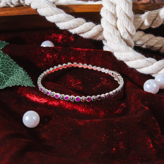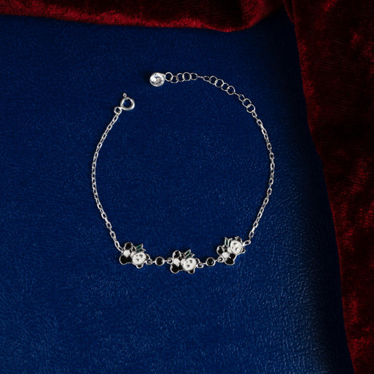 Silver Butterfly Pink Enamel Bracelet