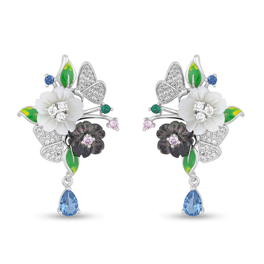 Lustrous Luna Butterfly Silver Earrings