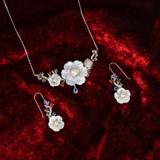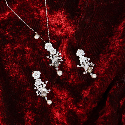 White Gold Floral Pearl Necklace
