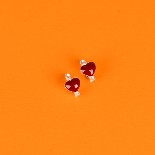 Crimson Cherish Heart Kiddie Silver Earrings