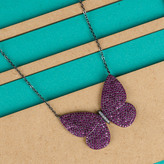 Purple Butterfly Silver Necklace