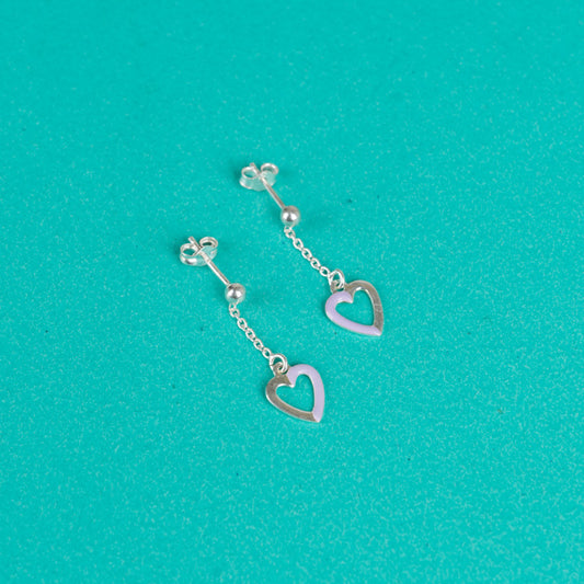 Lilac Love Heart Kiddie Silver Earrings