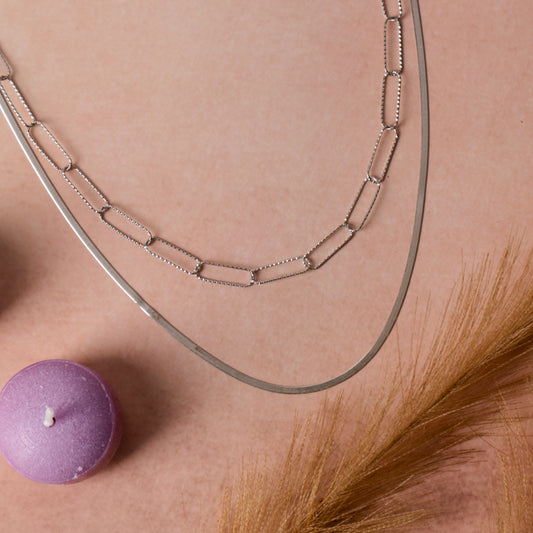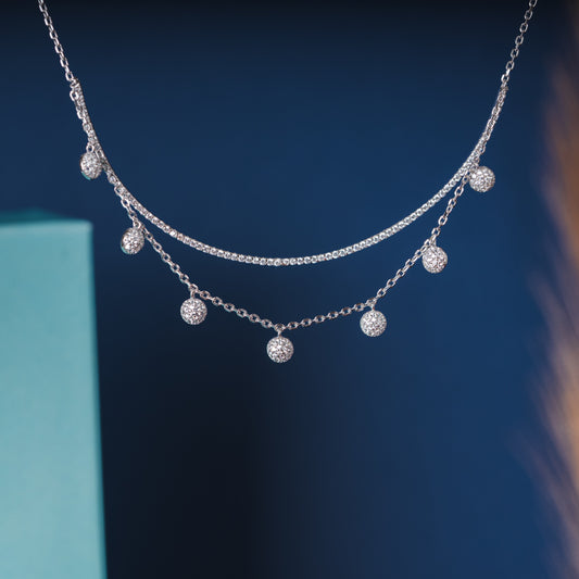 Pearl Station Layered Silver Necklace