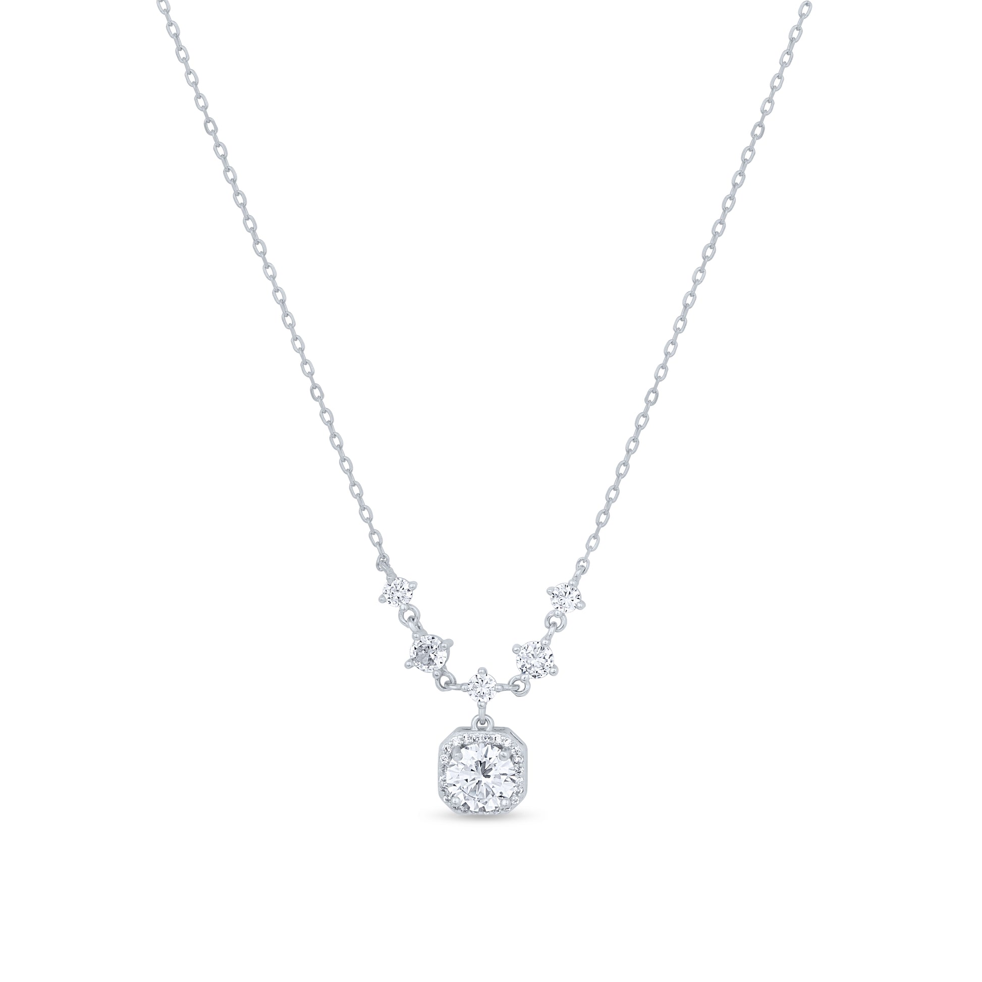 Shimmering like a constellation in the night sky, the Celestial Glow Pendant is a masterpiece of elegance. Delicate star-like stones gracefully ascend towards a brilliant centerpiece, exuding timeless sophistication. Crafted in sterling silver, this pendant captures the magic of celestial beauty, making it the perfect statement of grace and radiance.