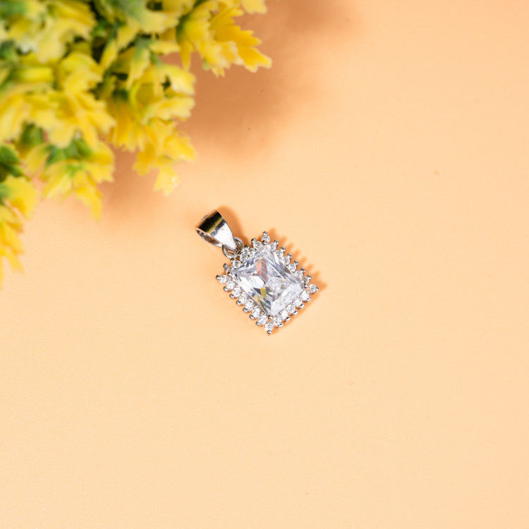 Encased in a delicate frame of 92.5 sterling silver, these gemstones are surrounded by a halo of shimmering zirconia, enhancing the geometric allure with a touch of glamour.