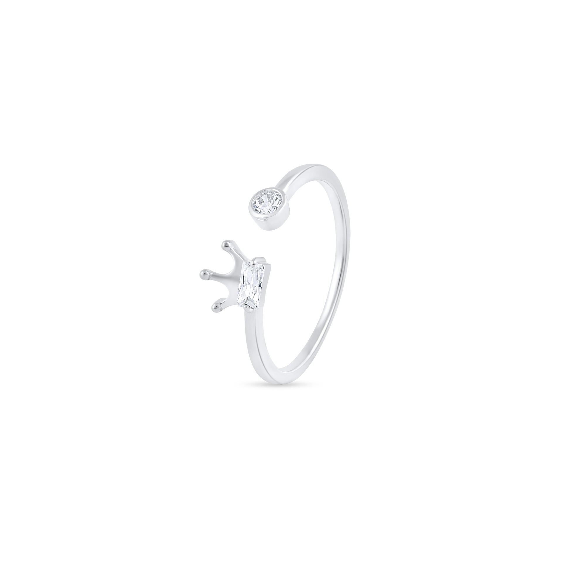 Elegant and refined, the Crown Whisper Ring embodies modern royalty. Crafted in 92.5 sterling silver, this open ring features a delicate crown motif on one end and a shimmering round stone on the other, symbolizing grace and strength in perfect balance. Lightweight yet striking, it’s a versatile piece that adds a regal touch to both everyday wear and special occasions.