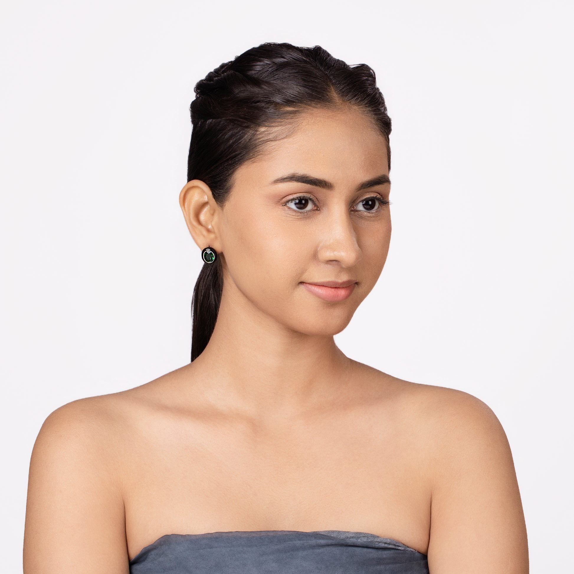 Bold meets elegance in the Emerald Noir Studs, crafted in 92.5 sterling silver. Featuring a rich green gemstone framed in sleek black enamel, these earrings bring a powerful pop of color to your everyday or evening look.