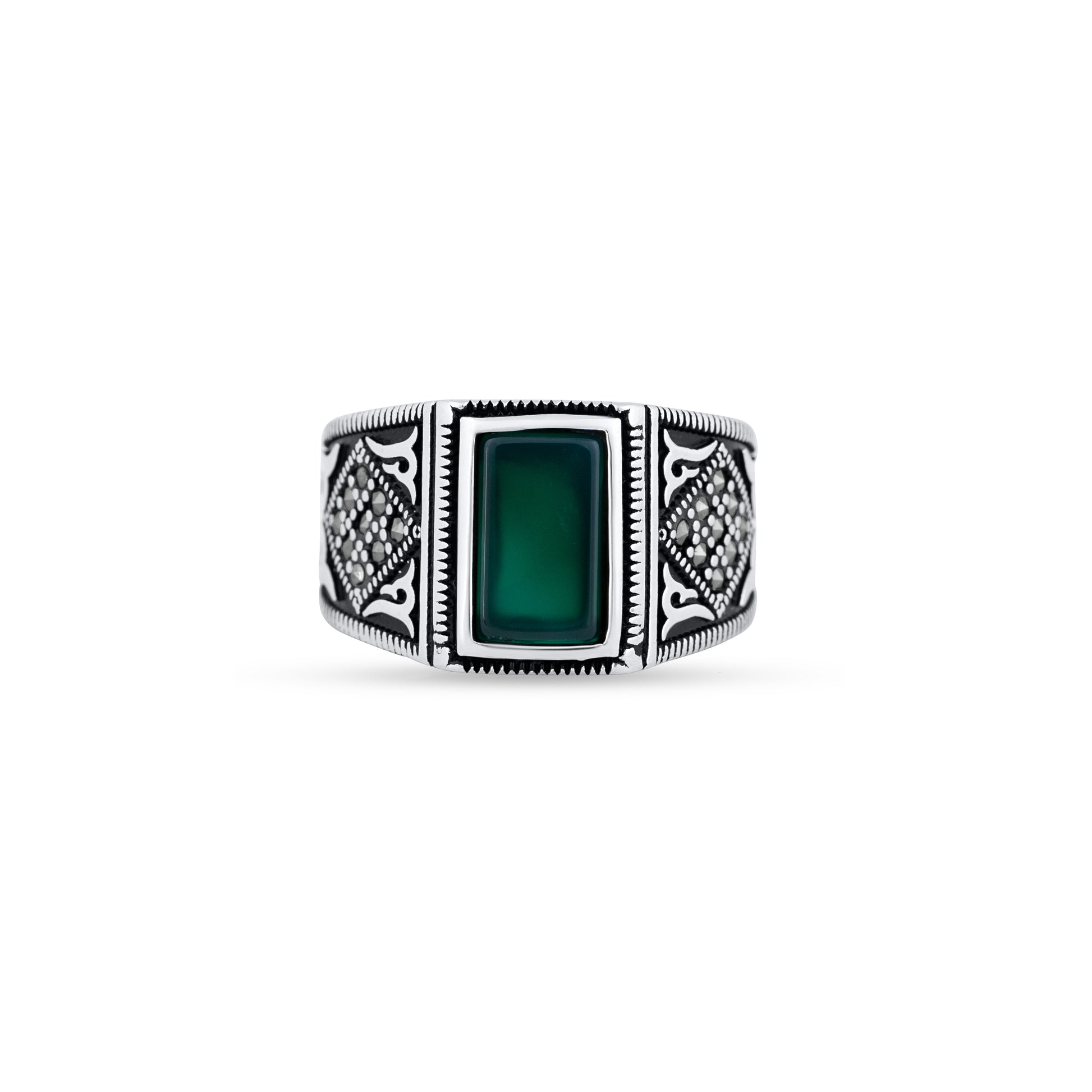 The Emerald Reign Ring blends royal elegance with timeless craftsmanship. Featuring a deep green rectangular stone set in 92.5 sterling silver, it exudes a quiet yet commanding charm. The oxidized motifs and intricate carvings along the band add a touch of heritage artistry, making this ring perfect for men who appreciate refined power and enduring sophistication.