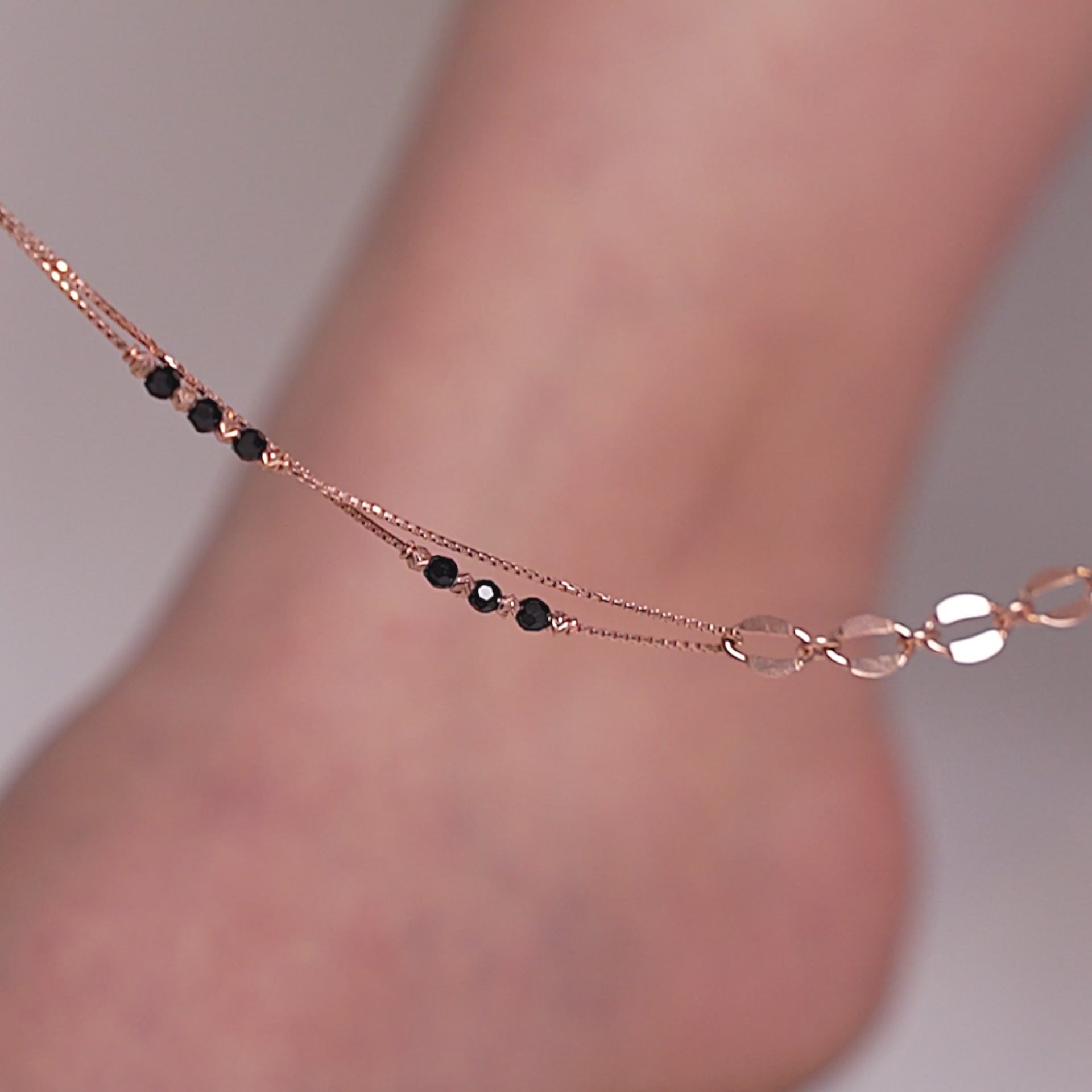 Add charm and protection to your style with the Evil Eye Link Anklet, crafted in a sleek rose-gold finish with a dual-chain design. Featuring black beads and a striking evil-eye charm for protection, this anklet also showcases a unique interlocking link motif at the center for a contemporary touch. Adjustable for the perfect fit, it’s the ideal accessory to wear solo or layer for a bold, trendy look.