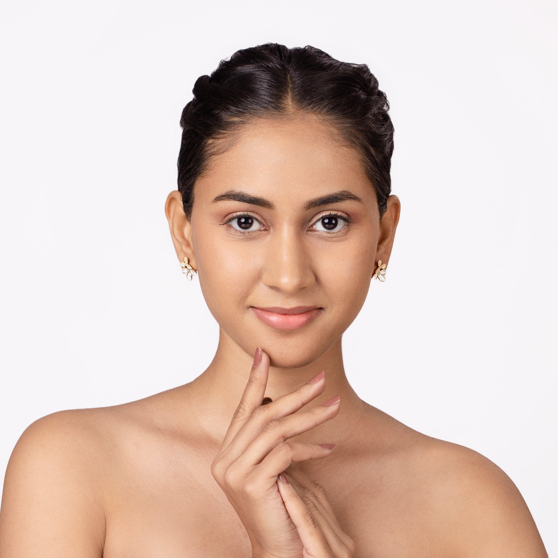 The Flutter Glow Earrings capture the delicate beauty of butterflies in motion. Crafted in gold-plated 92.5 sterling silver, these earrings feature a graceful dual-butterfly design — one sleek and polished, the other adorned with sparkling stones for a radiant shimmer. Perfect for adding a touch of charm and femininity to both everyday wear and special occasions.