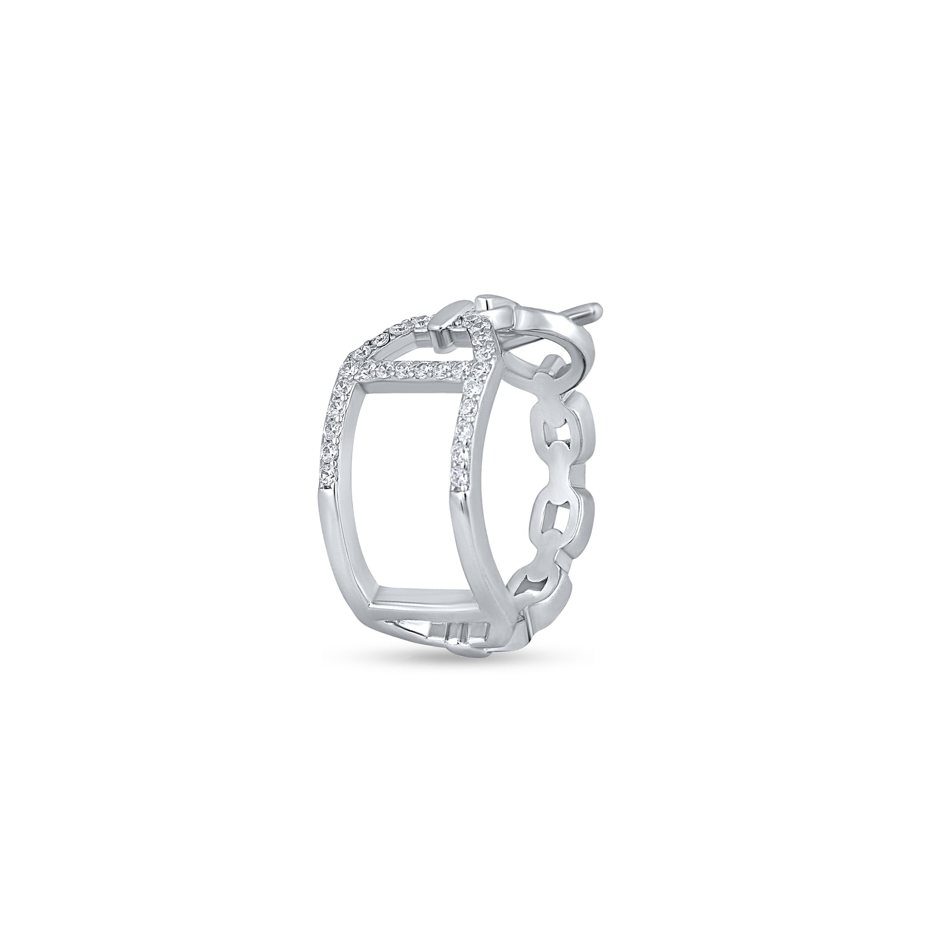The "Framework Finesse Ring" showcases a masterful blend of contemporary design and timeless elegance. Crafted in premium sterling silver, this ring features a unique rectangular silhouette that frames a series of delicately interconnected links, creating an impression of sophisticated architecture on your finger. The perimeter of the ring is accentuated with a row of sparkling stones, enhancing its overall allure and radiance. This design not only captures the eye but also symbolizes strength and connectivity, making it an ideal choice for those who appreciate jewelry that combines artistic expression with meaningful themes. Perfect for formal events or everyday elegance, the Framework Finesse Ring stands out as a modern classic in any jewelry collection.