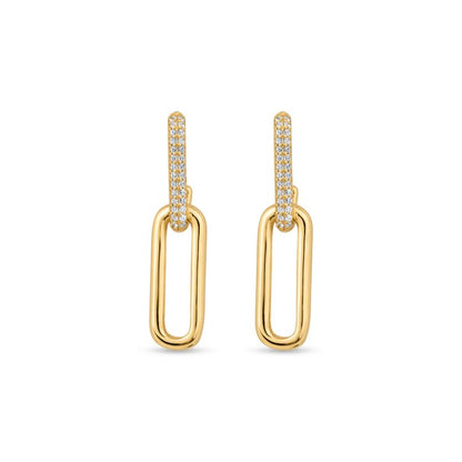 Crafted from high-quality gold, these earrings feature a modern link design adorned with shimmering pavé stones.