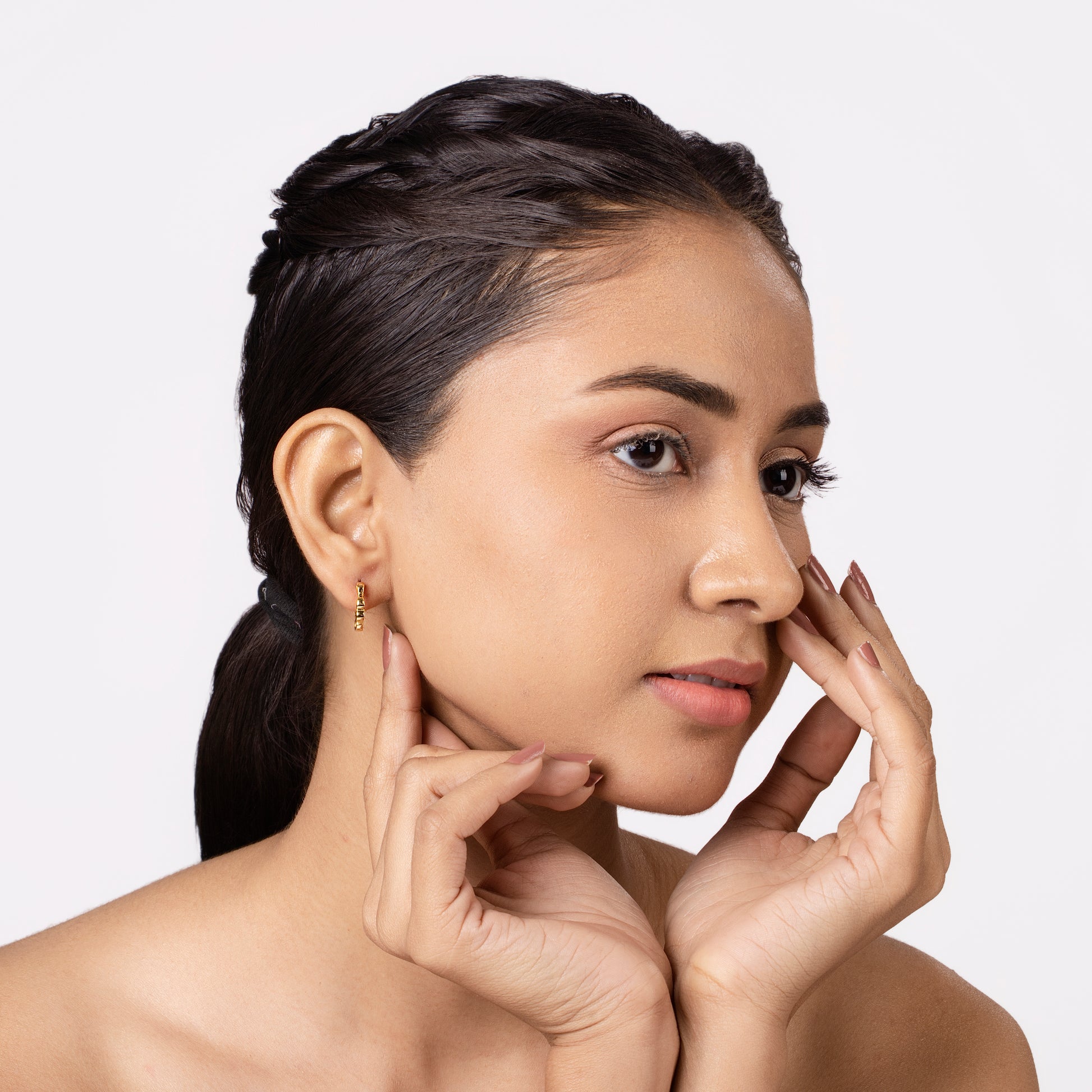 The Golden Wave Hoops blend timeless charm with modern simplicity. Crafted in gold-plated 92.5 sterling silver, these sleek hoops feature a soft wave-inspired design that reflects light with every turn. Their smooth, polished finish makes them a versatile addition — perfect for elevating everyday looks or adding a subtle glow to evening elegance.