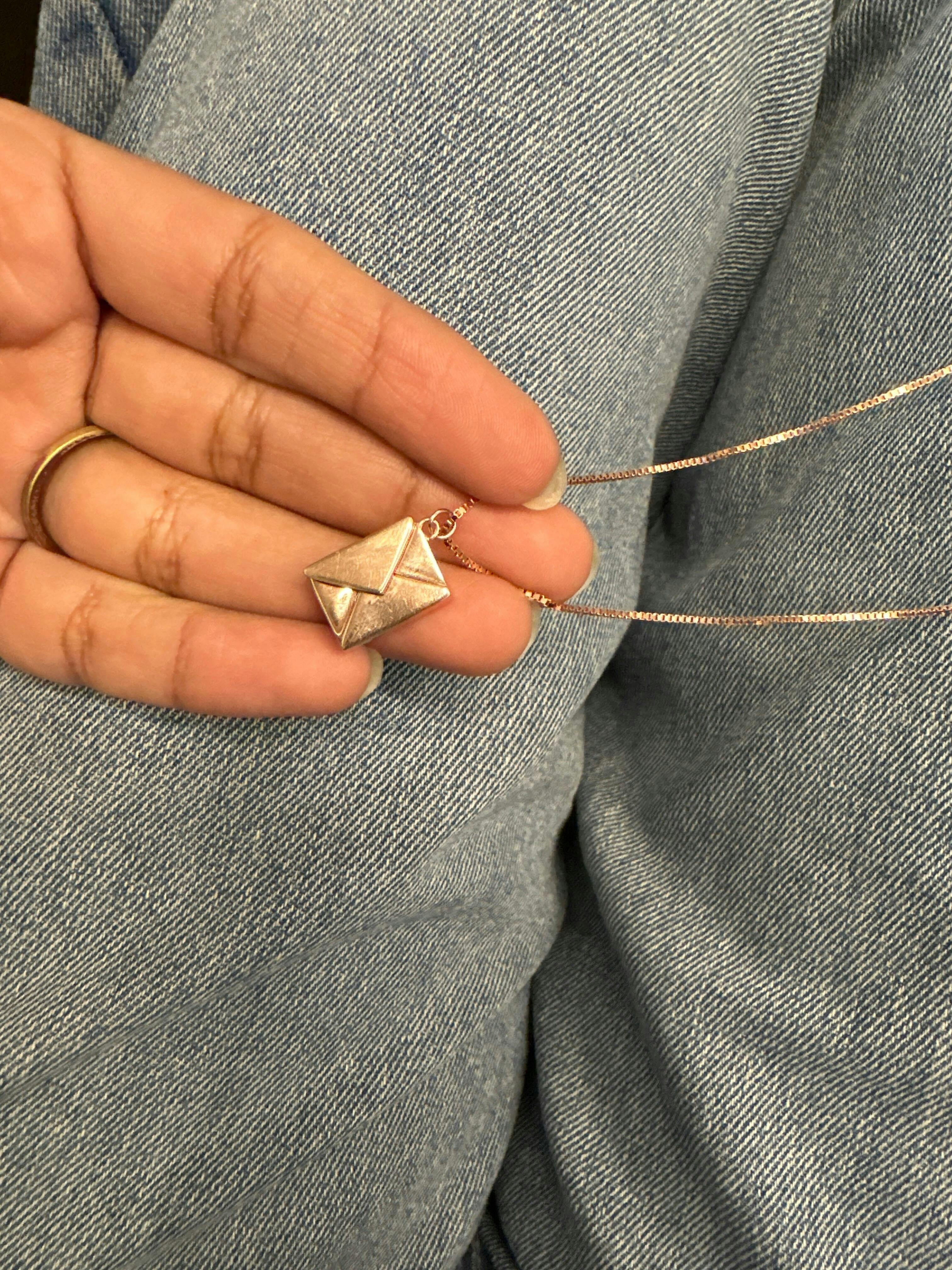 Crafted in rose gold-plated 92.5 sterling silver, the Love Letter Pendant captures the charm of handwritten emotions. A sleek, symbolic piece perfect for gifting someone special—or wearing close to your heart.