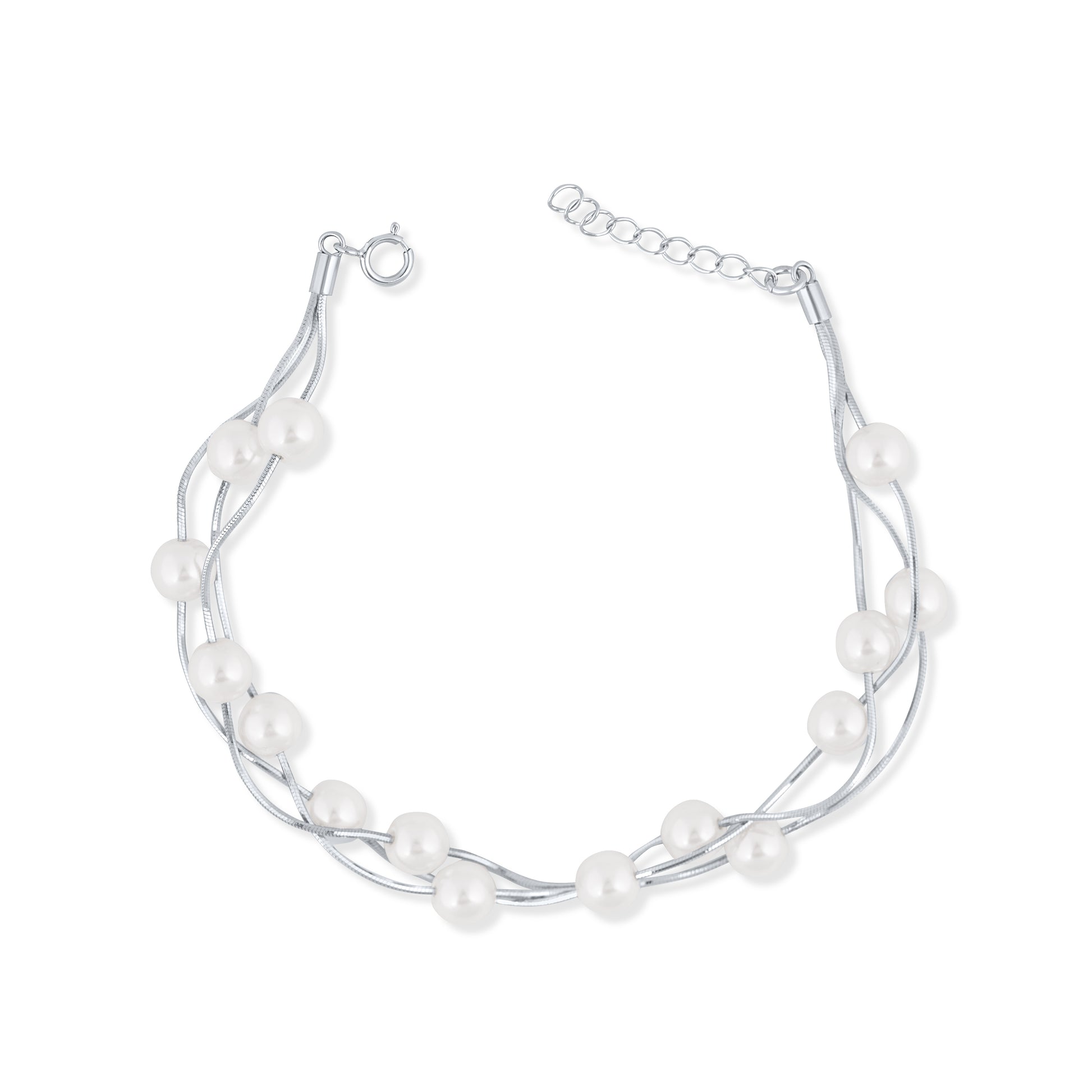 The Pearl Stream Bracelet features a delicate arrangement of lustrous pearls gracefully set along slender, multi-layered metal strands. Its fluid design evokes a sense of elegance and movement, making it a perfect accessory for both casual and formal occasions. Available in a sleek silver finish and a warm tone, this bracelet effortlessly blends classic charm with modern style, adding a touch of sophistication to any ensemble.