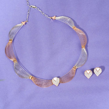 This exquisite set features a pair of earrings and a necklace, each adorned with delicate pink hearts and sparkling diamonds or cubic zirconia stones.