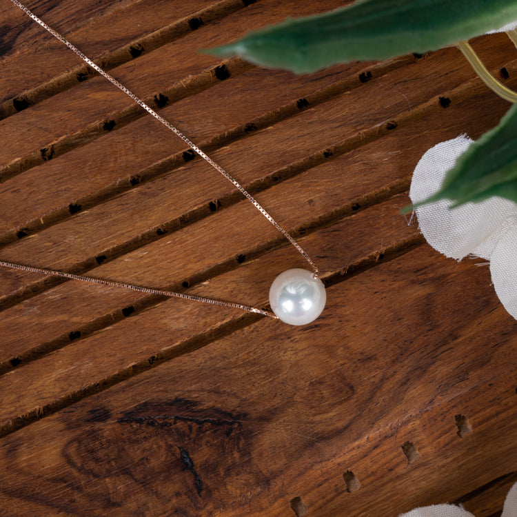 Nothing even comes close to the eternal beauty of a perfectly round pearl. Softly hued in milky white with a neat box chain running through it. The heavenly pearl is perfectly complimented by the chain's rose gold vibrance. Crafted in pure silver (925 certified), this is your quintessentially classic piece of art. You can wear it every single day and Its beauty will only grow over time, almost becoming a part of your persona.