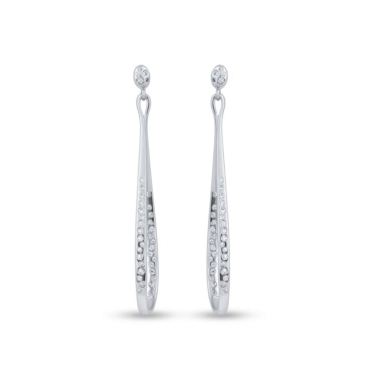 Along their graceful length, a series of cubic zirconia stones are meticulously set to capture light from every angle, providing a brilliant sparkle that enhances any outfit.