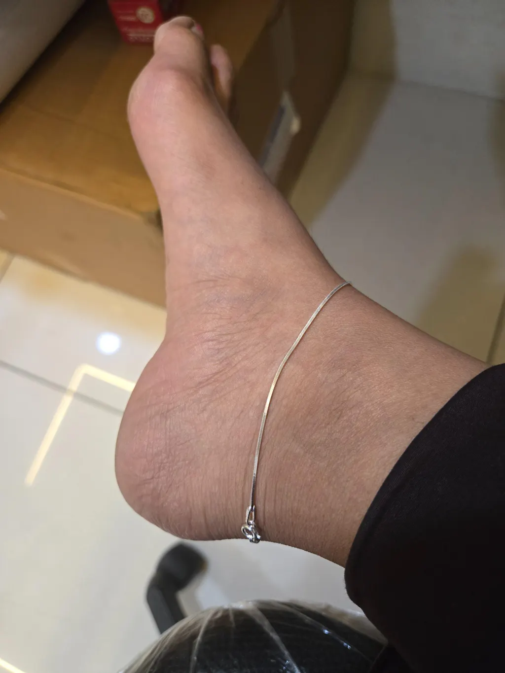 Simple yet elegant, the Silver Glide Anklet is crafted in 92.5 sterling silver with a sleek flat-chain design that sits gracefully on the ankle. Its smooth finish gives it a modern, polished look, perfect for everyday wear or layering with other anklets for a chic stacked style. Lightweight and versatile, this anklet adds a subtle touch of sophistication to any outfit, making it an essential addition to your jewelry collection.