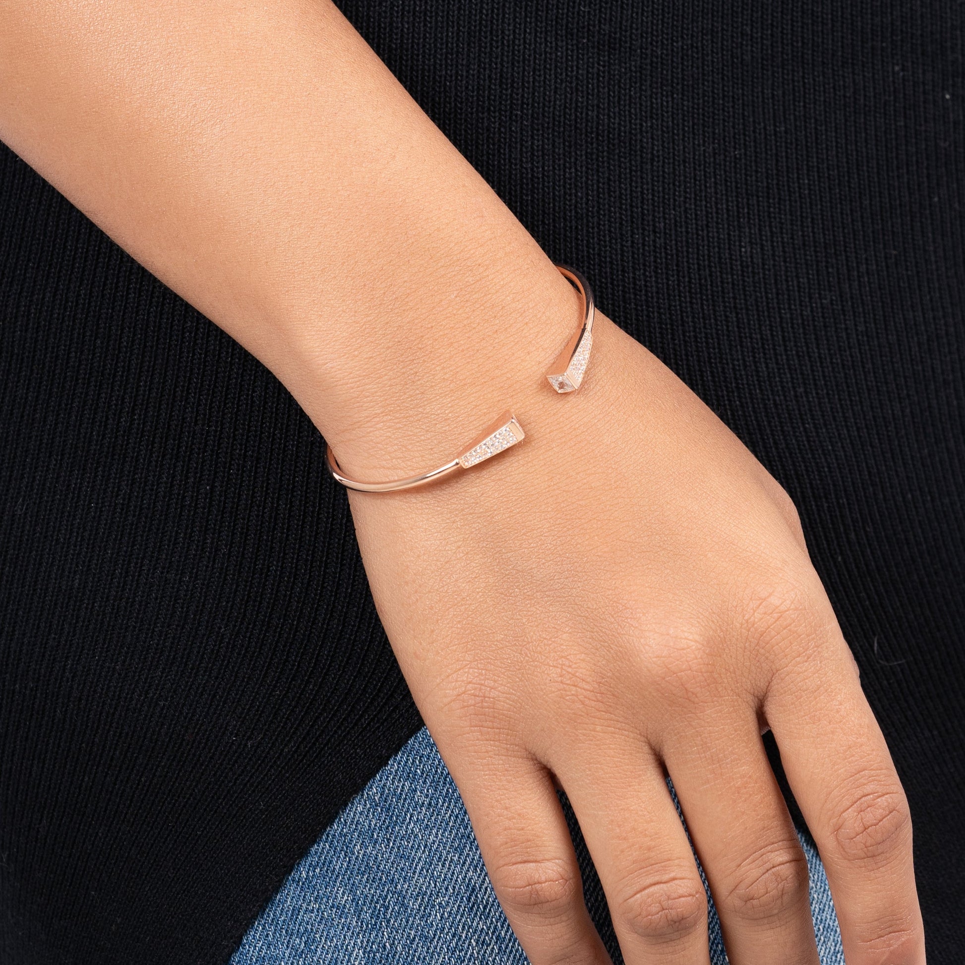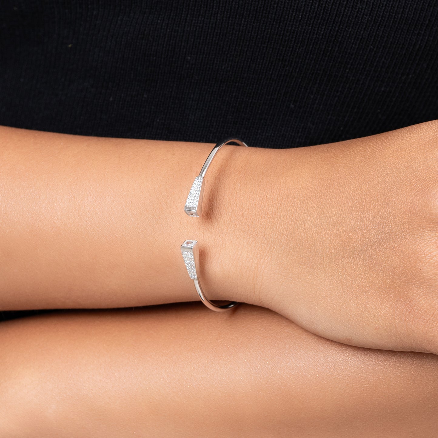 Read moreA minimalist sterling silver open bangle with tapered pavé-set crystal ends, offering a sharp and contemporary touch to your everyday elegance.