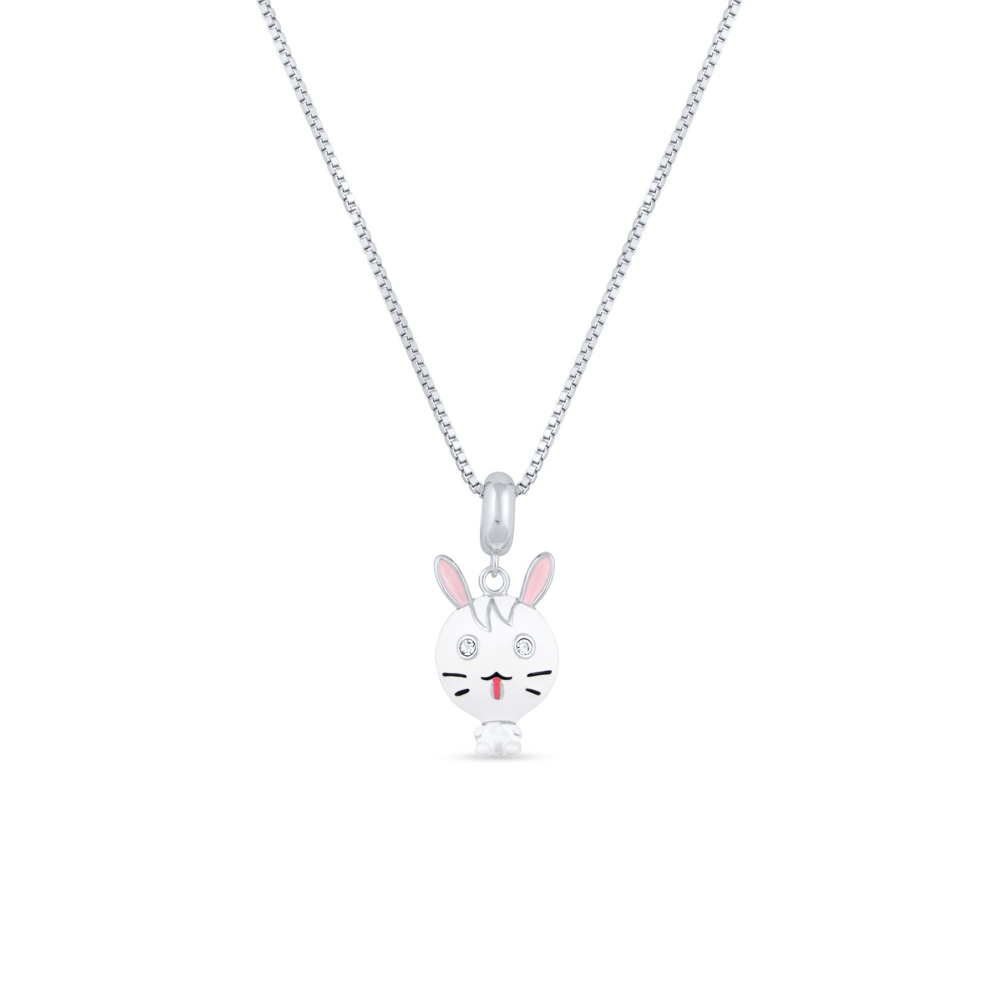 Cute, lively, and full of charm — the Snow Bunny Wink Pendant is a delightful accessory that brings smiles all around. Crafted in 92.5 sterling silver, this pendant features an adorable bunny face with twinkling crystal eyes, pink enamel ears, and a playful tongue-out expression. Perfect for kids or anyone who loves whimsical jewelry, it adds a touch of fun and sparkle to every outfit. Pair it with a sleek silver chain for an irresistibly cute everyday look.