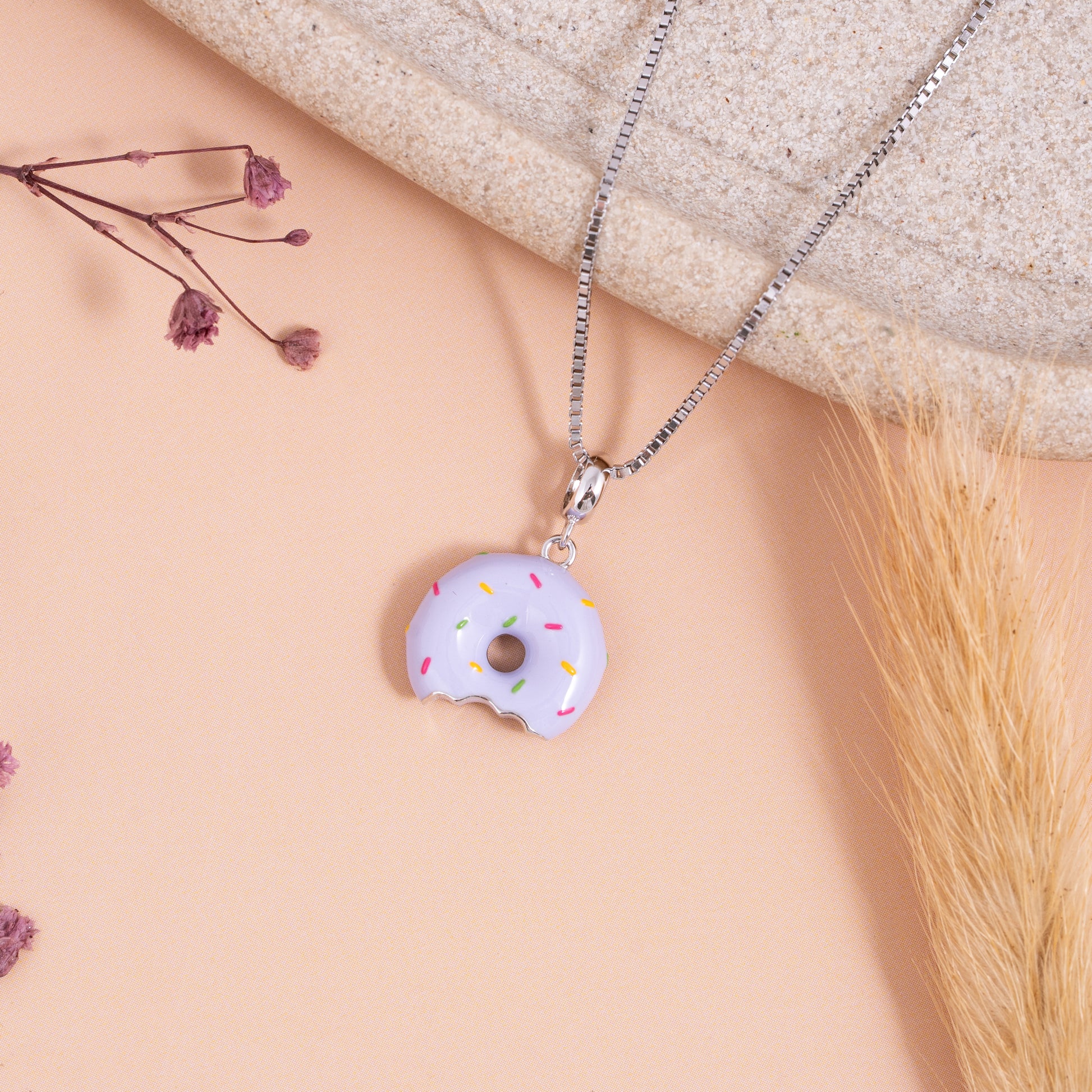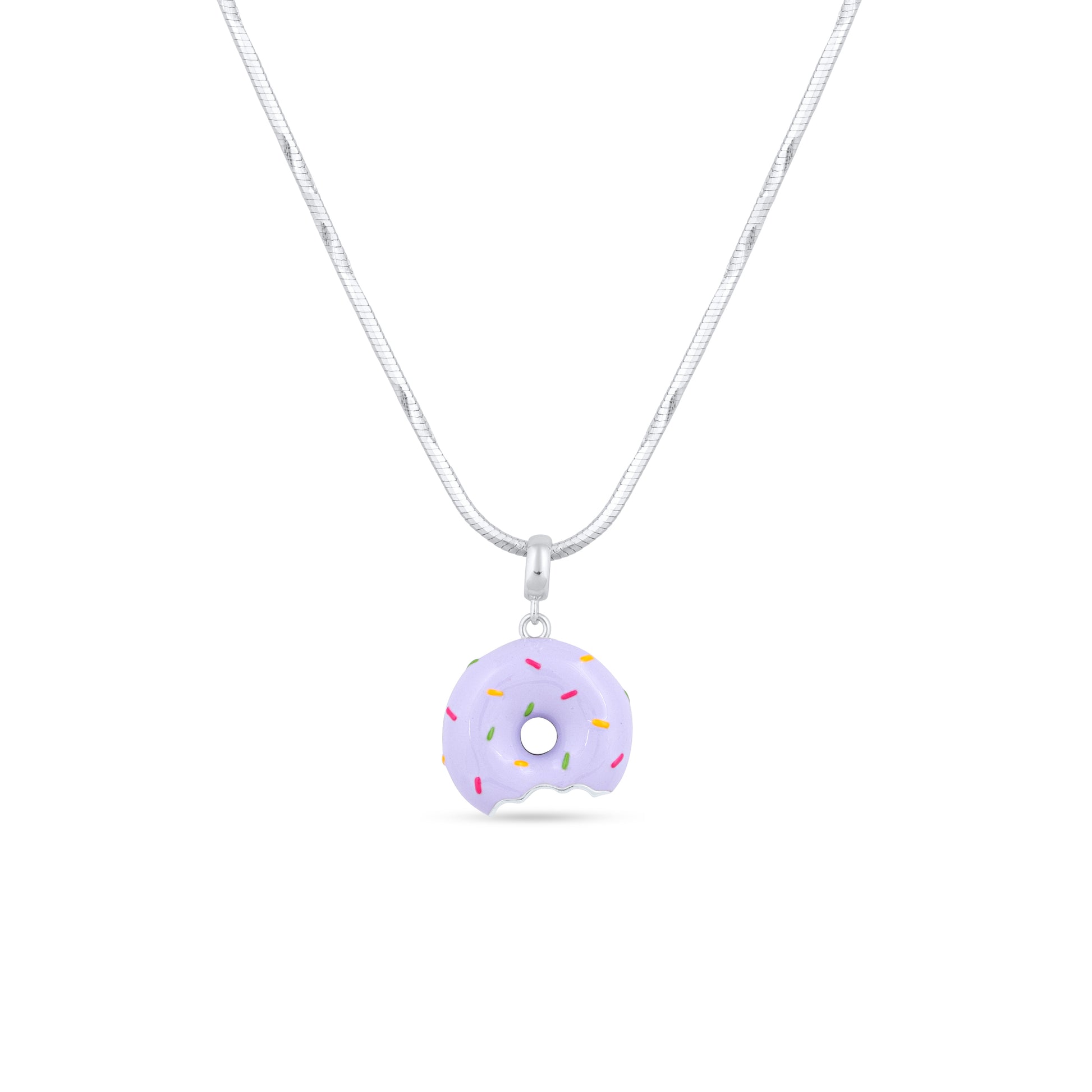 Indulge your sweet side with the Sprinkle Bite Donut Pendant. Crafted in 92.5 sterling silver, this adorable pendant features a pastel purple enamel donut with colorful sprinkles and a cute bitten detail that adds a fun, realistic touch. Perfect for kids and those who love quirky accessories, it brings a pop of color and joy to any outfit. Pair it with a sleek silver chain for a playful, dessert-inspired look that’s simply irresistible.