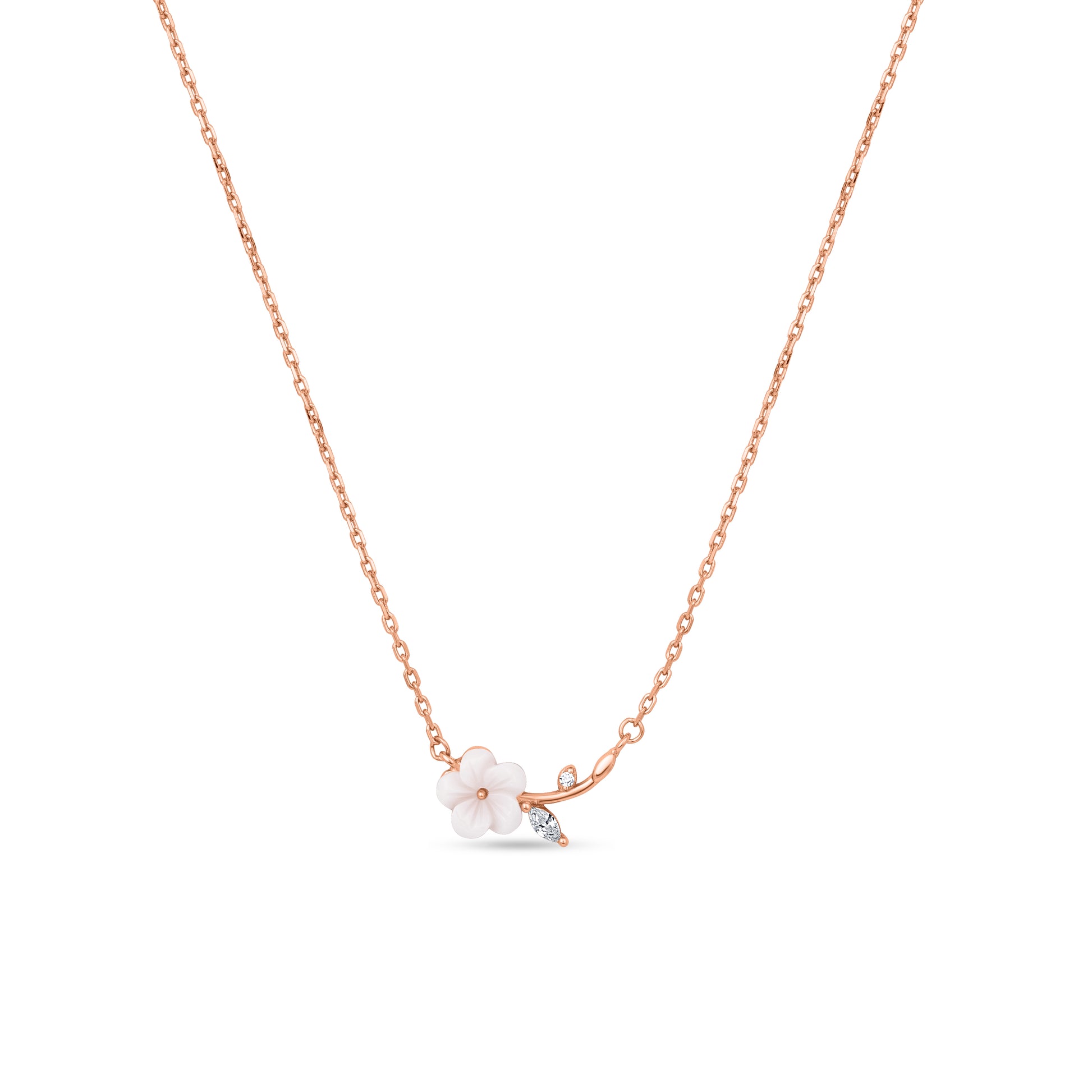 Delicate and enchanting, the Petal Whisper Pendant captures the essence of nature’s grace. Crafted in lustrous rose gold, this pendant features a beautifully sculpted floral motif with a luminous pearl-like petal and sparkling accents. The gentle curve of the branch adds an elegant touch, making it perfect for everyday wear or special occasions. A timeless piece that whispers sophistication and charm with every glance.