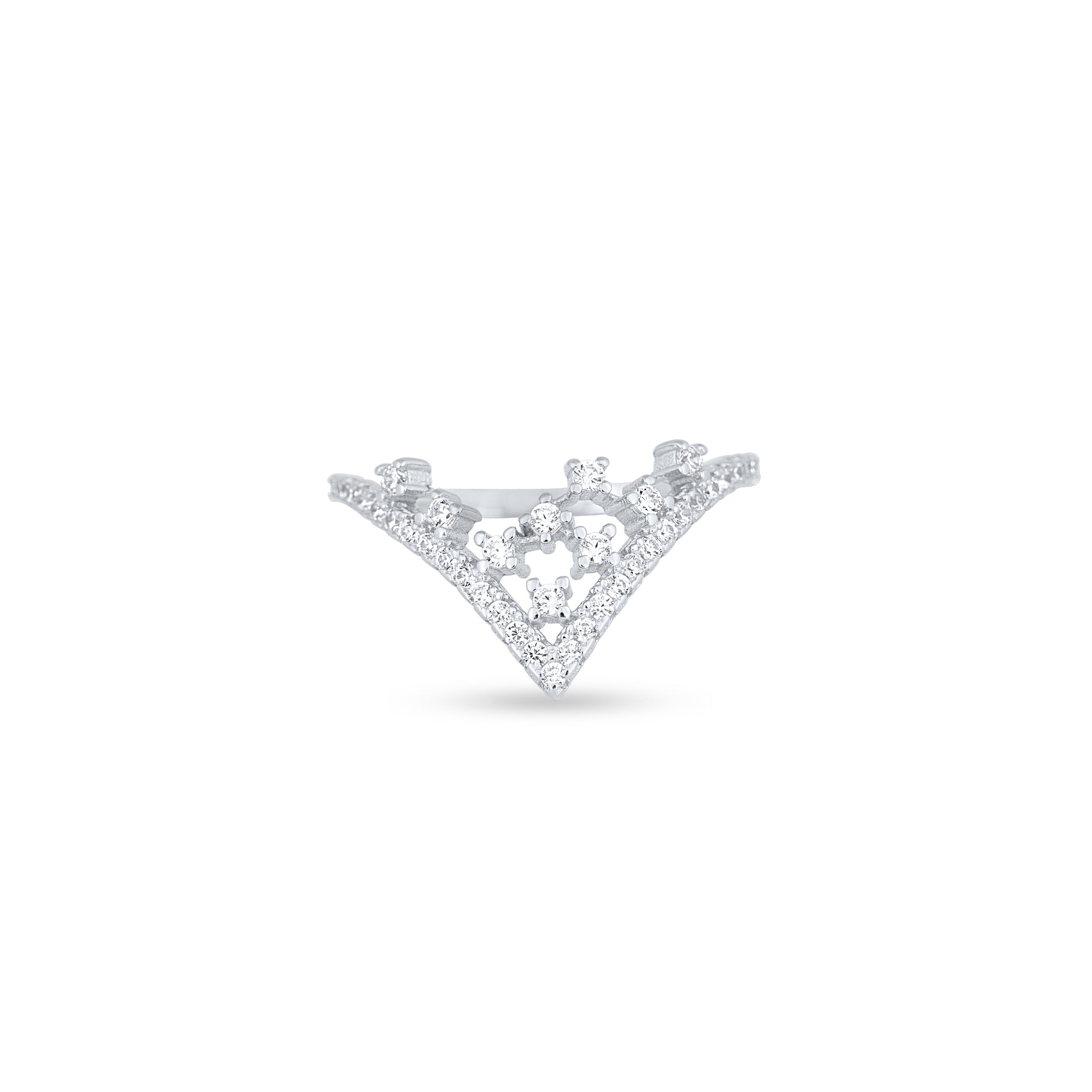 Elevate your elegance with the Tiara Prism Ring, a captivating fusion of regal design and modern luxury. This delicate ring features a crown-inspired motif that forms a graceful triangular shape, adorned with sparkling gems that reflect light like a radiant prism. The intricate detailing of the crown adds a touch of majesty, while the sleek band offers a refined, contemporary finish. Perfect for adding a royal flair to both everyday and special occasion looks, the Tiara Prism Ring is a statement of sophistication and timeless charm, designed to make you feel like royalty with every wear.
